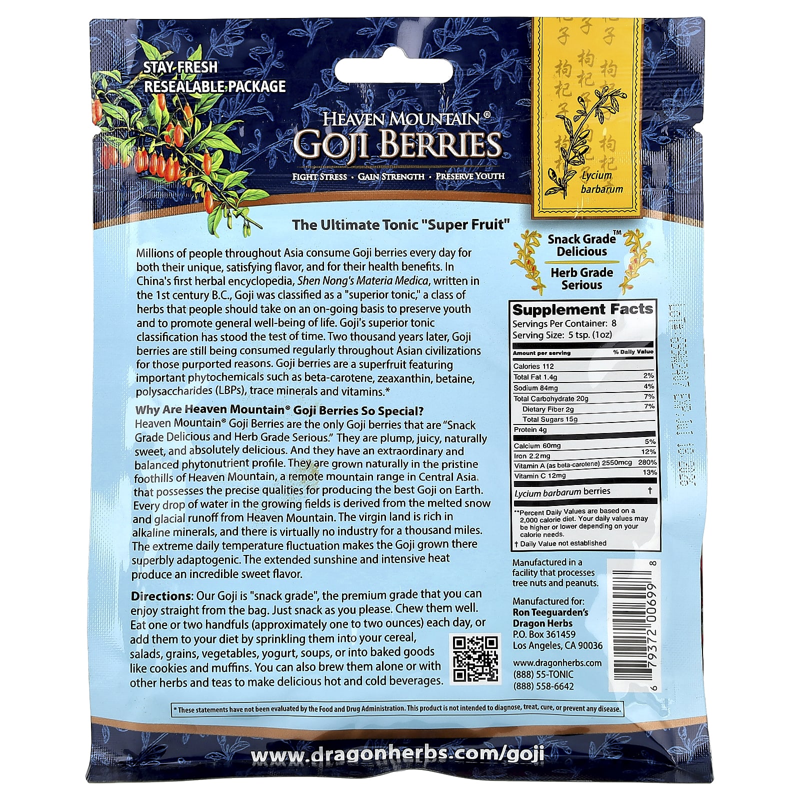 Dragon Herbs Bagas de Goji da Montanha Celestial 227 g (8 oz) – Dragon Herbs Alimentos Petiscos e lanches Frutas e Legumes Secos Goji berries.
