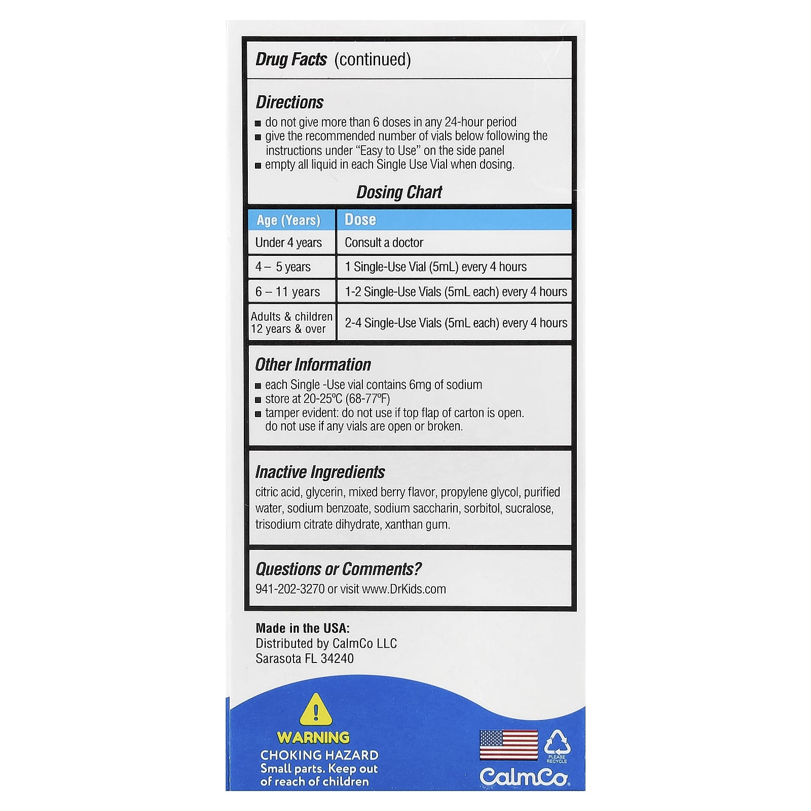 | Ingredientes Inativos: Ácido cítrico, glicerina, sabor de frutos silvestres mistos, propilenoglicol, água purificada, benzoato de sódio, sacarina de sódio, sorbitol, sucralose, citrato trissódico di-hidratado, goma xantana. | |
