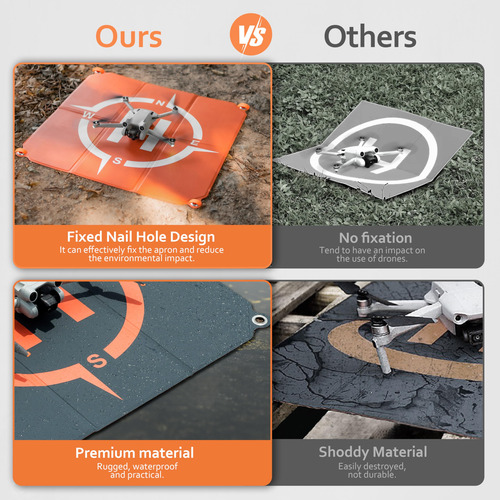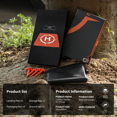 Pista de pouso de drone STARTRC PHOTO, heliporto universal dobrável à prova d'água de dupla face (22 pol/55 cm) para acessórios de drone DJI Mini 4 Pro/Air 3S/Neo/Mini 2SE/Mini 4K/Mini 3 Pro – Materiais premium: a plataforma de pouso do drone é feita de material de PVC PU impermeável superior. Seu design de dupla face é robusto, com locais de pouso proeminentes para facilitar o posicionamento do drone – Aplicabilidade: a plataforma de pouso do drone é compatível com os quadricópteros DJI Neo/Mini 4 pro/Air 3/AIR 3/Mini 2/MINI 4K/Avata 2/Mini 3/Mavic 3/RC – Plataforma de pouso do drone dobrável: as plataformas de pouso do drone são fáceis de dobrar e permitem que você as leve para qualquer lugar. A plataforma de lançamento do drone é pesada o suficiente para ficar no chão e não explodir – Qualidade e portátil: leve, portátil, fácil de desdobrar e dobrar rapidamente, protegida contra o sol, à prova de desbotamento, à prova d'água e fácil de limpar. Vem com uma bolsa de armazenamento à prova d'água, fácil de armazenar e transportar ao ar livre – Tamanho do Drone Landing Pad Pro: tamanho 22 polegadas x 22 polegadas (55 x 55 cm). Esta plataforma de pouso é a primeira escolha para voos ao ar livre