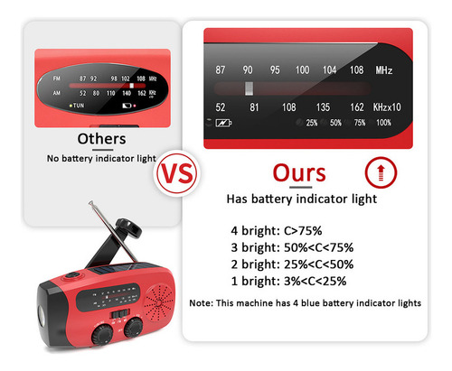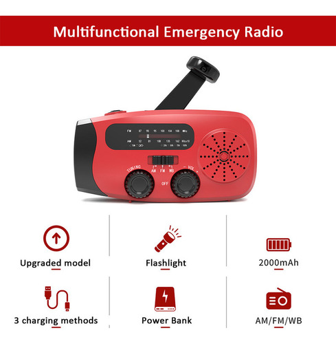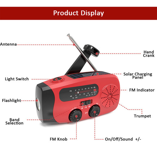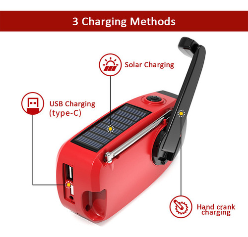 1. carregamento por manivela/carregamento usb/carregamento solar