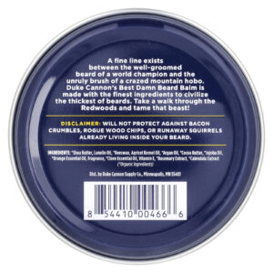 Existe uma linha tênue entre a barba bem cuidada de um campeão mundial e a escovação rebelde de um novato maluco. O Bálsamo para Barba Best Damn da Duque de Cannonos é feito com os melhores ingredientes para civilizar as barbas mais espessas.