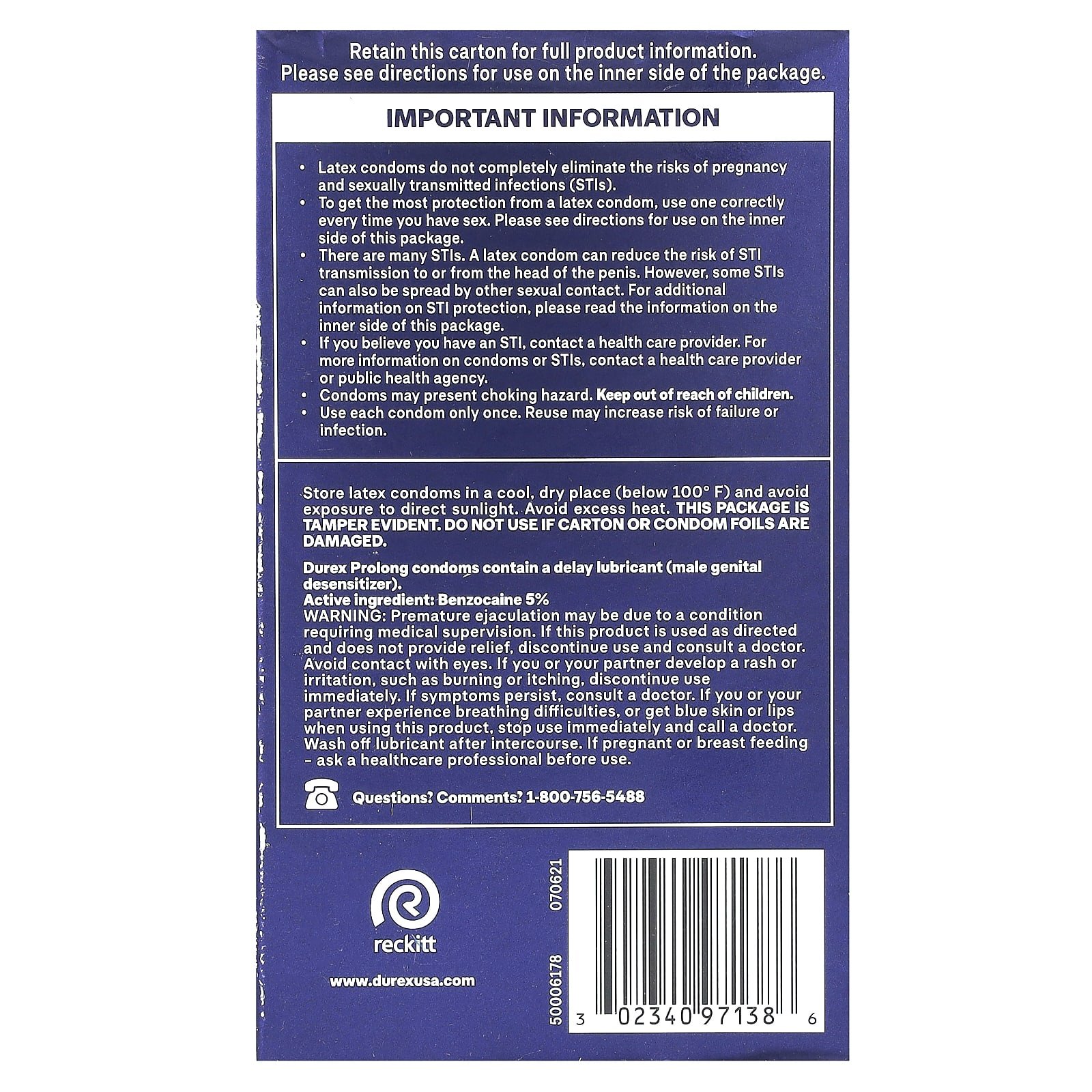 Os conservantes Durex Prolong contêm um lubrificante retardado (dessensibilizante dos órgãos genitais masculinos).
