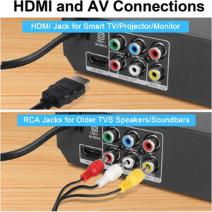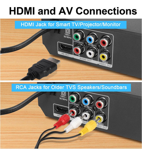 • ??Conexões HDMI e AV? Ambos os dois tipos de cabos incluídos para ajudá -lo a conectar facilmente sua TV, projetores ou outros sistemas de áudio para áudio de alta qualidade e uma experiência aprimorada de entretenimento ao assistir seus filmes, programas e esportes favoritos.