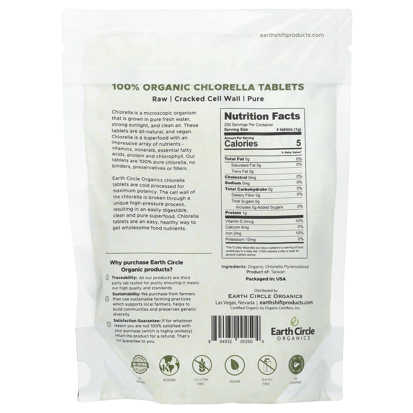 Earth Circle Organics Chlorella 100% Orgânica 1.000 Comprimidos 248 g (875 oz) – Earth Circle Organics Suplementos Superalimentos Algas Chlorella.