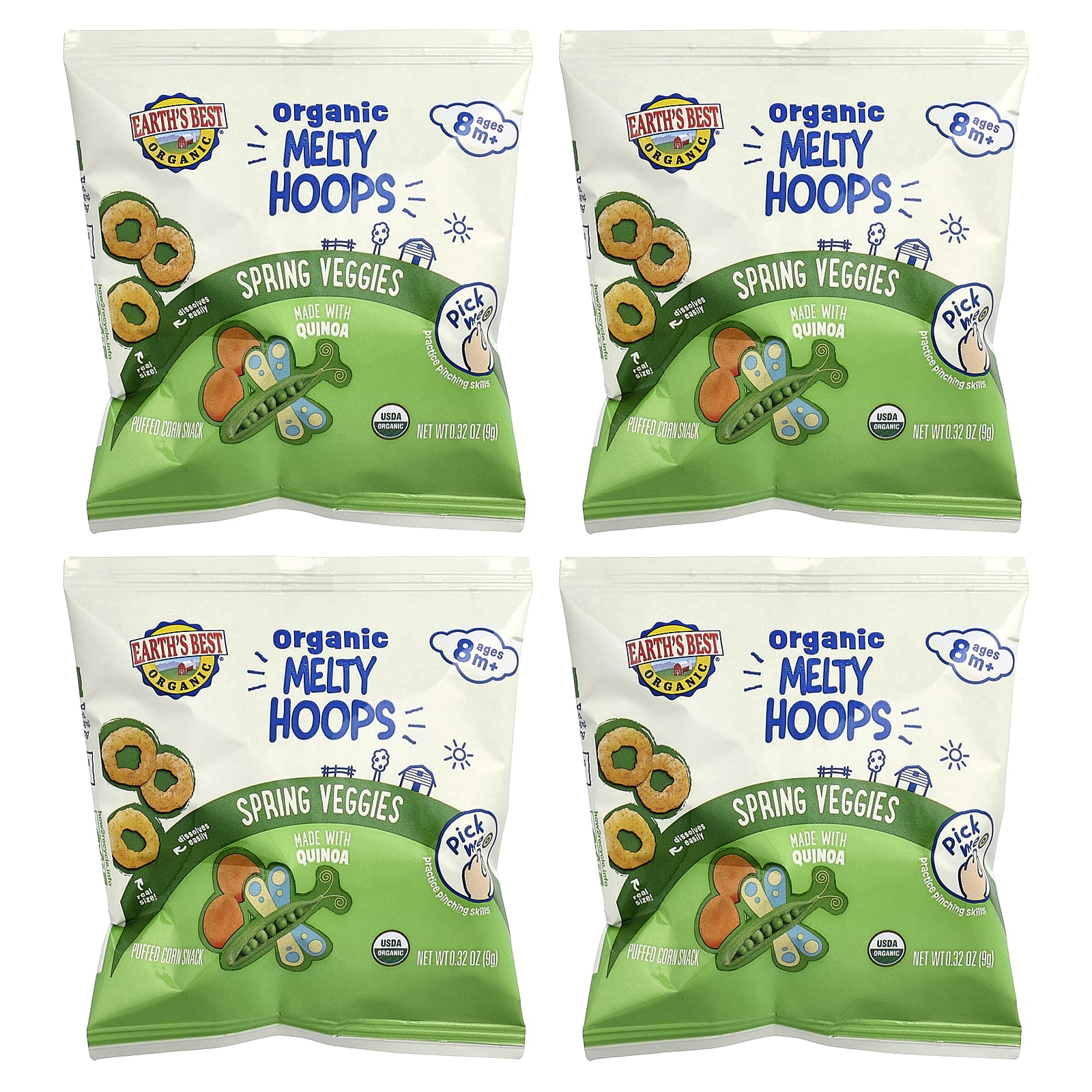 Earths Best Bastões Melty Orgânicos Lanche de Milho Tufado Vegetais da Primavera Mais de 8 Meses 4 Pacotes de Porção Individual 9 g (032 oz) Cada – Earth’s Best Bebês e Crianças Alimentação Lanches para Bebês e Crianças.