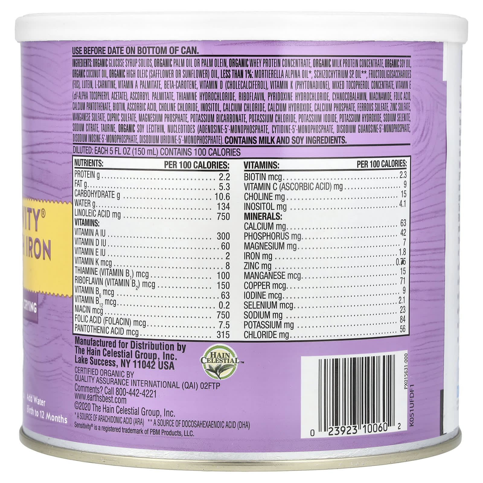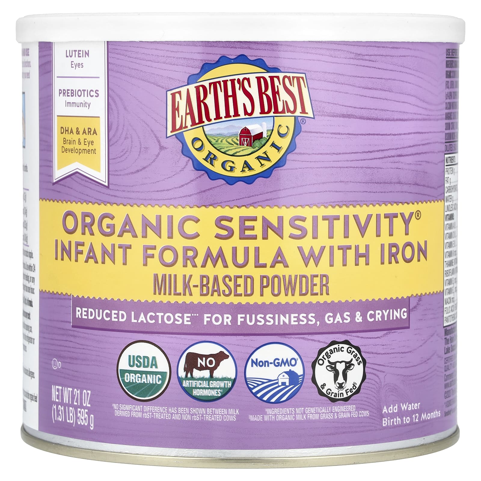 Earths Best Fórmula Infantil com Ferro para Sensibilidade Orgânica 595 g (21 oz) – Earth’s Best Bebês e Crianças Alimentação Fórmula para Bebês.