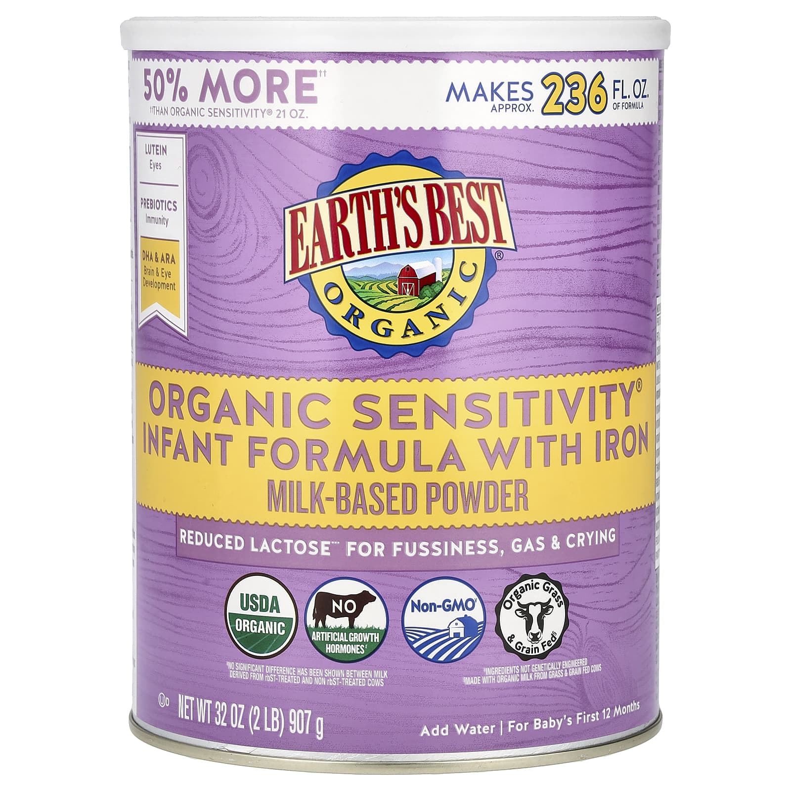 Earths Best Fórmula Infantil com Ferro para Sensibilidade Orgânica Para os Primeiros 12 Meses do Bebê 907 g (32 oz) – Earth’s Best Bebês e Crianças Alimentação Fórmula para Bebês.