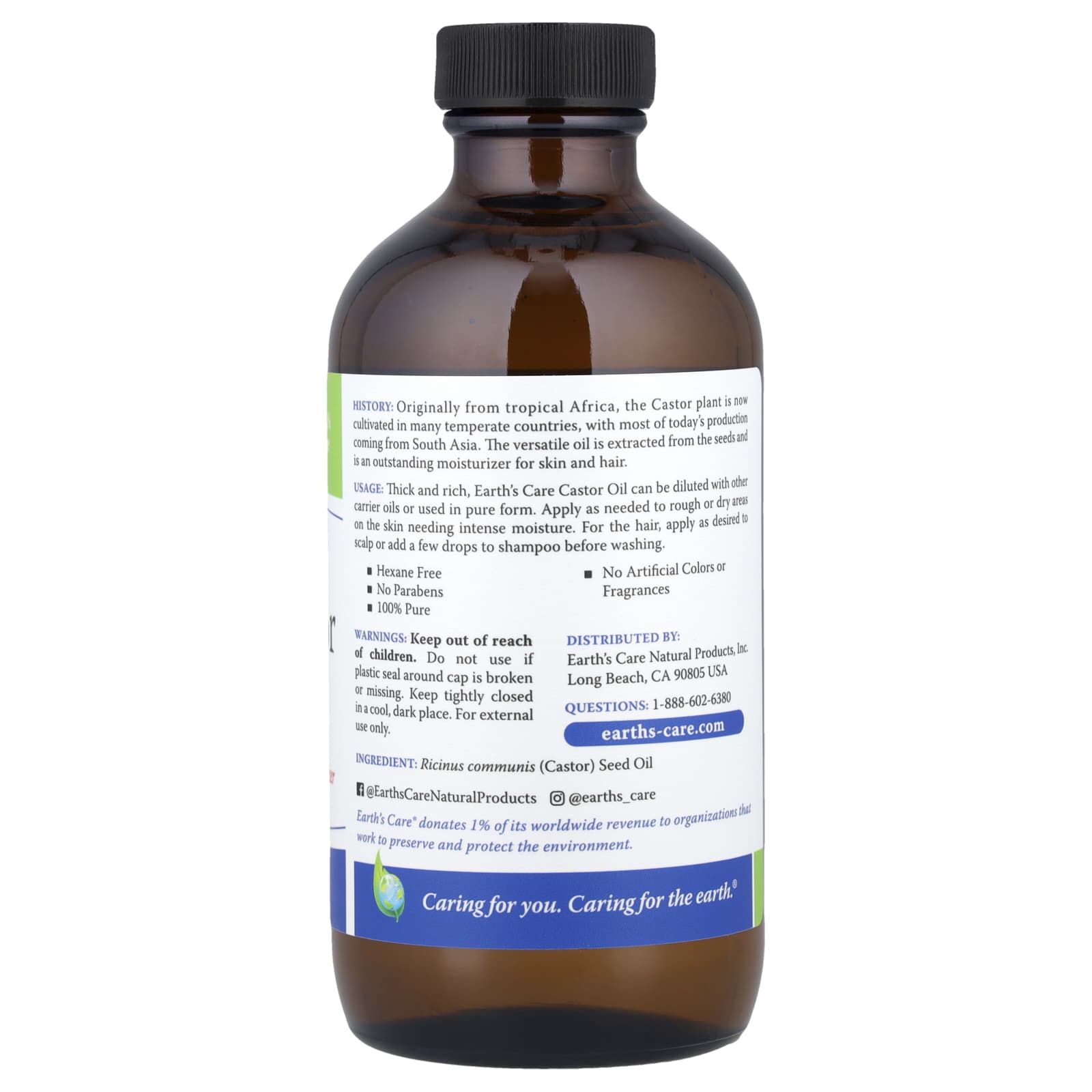 Earths Care Óleo de Rícino 100% Puro 236 ml (8 fl oz) – Earth’s Care Cuidados Pessoais Cuidados com o Corpo Óleos corporais e de massagem Óleo de Rícino Cabelos Tratamentos capilares.