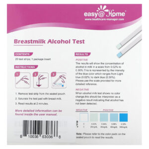 Easy@Home Teste de Álcool do Leite Materno 20 Testes – Easy@Home Cuidados Pessoais Armário do Banheiro Testes de Saúde em Casa.
