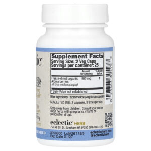 Eclectic Herb Aronia Berry Liofilizada 50 Cápsulas Vegetais (450 mg por Cápsula) – Eclectic Herb Suplementos Ervas.