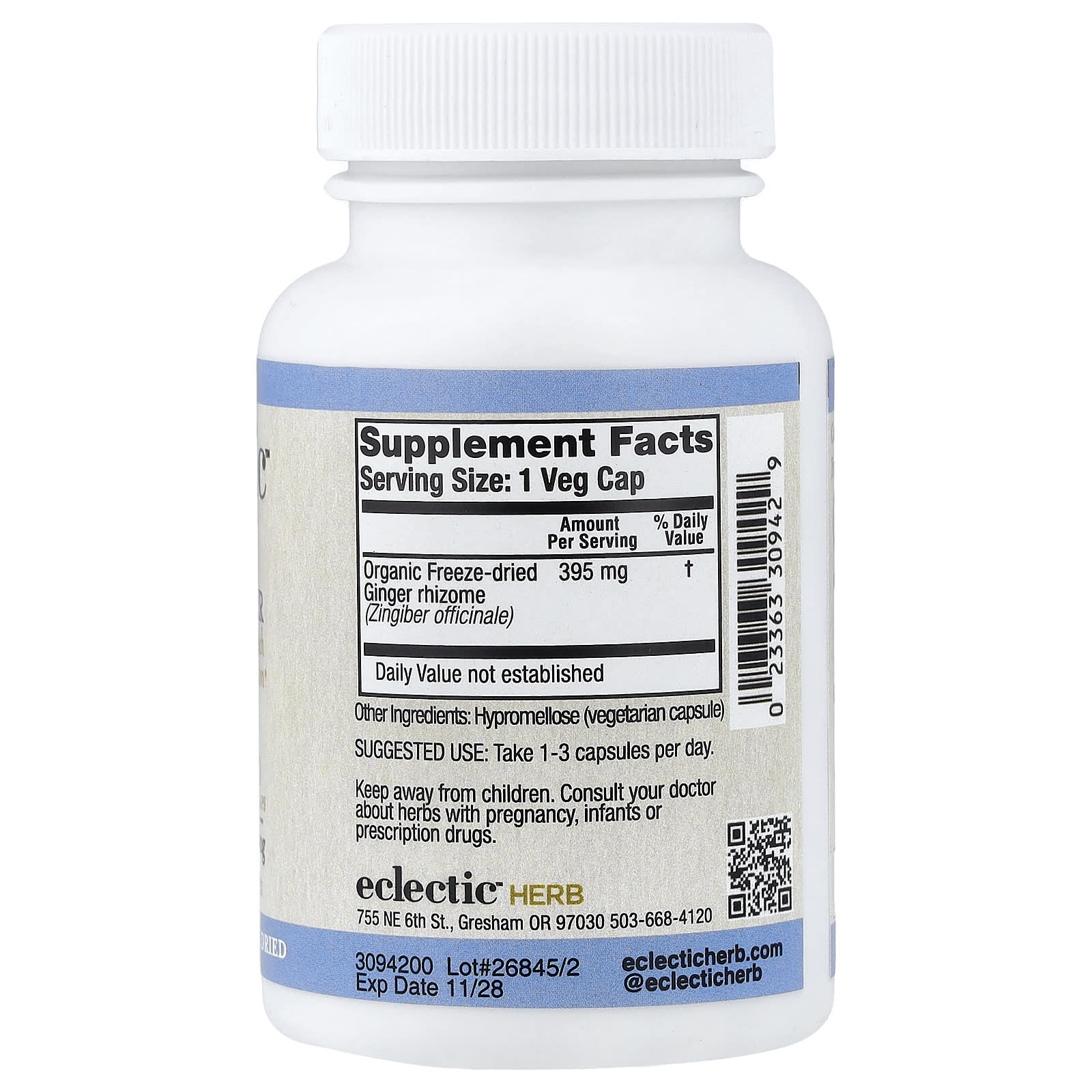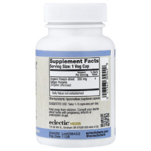 Eclectic Herb Gengibre 395 mg 90 Cápsulas Vegetais – Eclectic Herb Suplementos Ervas Suplementos de Gengibre.