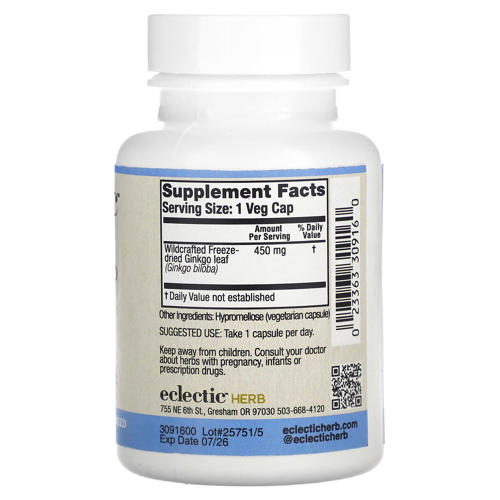 Eclectic Herb Ginkgo 450 mg 90 Cápsulas Vegetais – Eclectic Herb Suplementos Ervas Ginkgo Biloba.