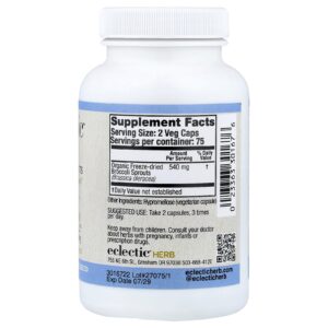 Eclectic Herb Liofilizado Brotos de Brócolis 150 Cápsulas Vegetais (270 mg por Cápsula) – Eclectic Herb Suplementos Superalimentos Superalimentos Verdes Brócolis.