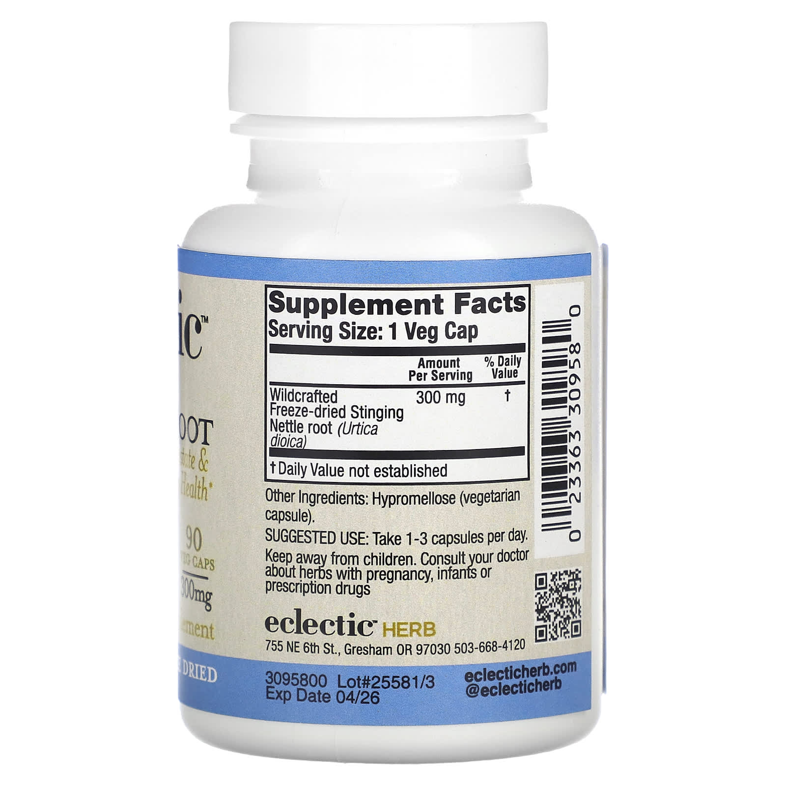Eclectic Herb Raiz de Urtiga 300 mg 90 Cápsulas Vegetais – Eclectic Herb Suplementos Ervas Urtiga.