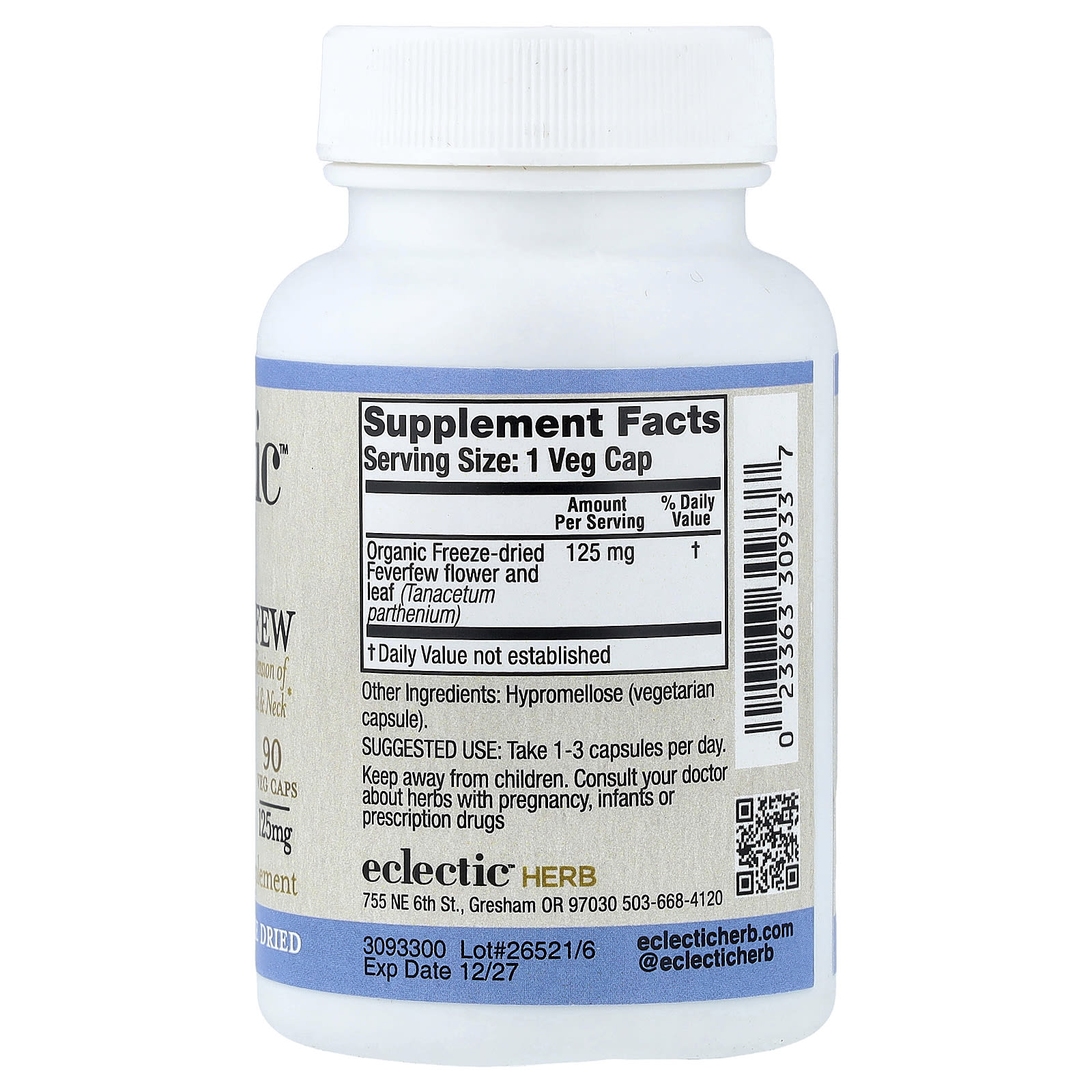 Eclectic Herb Tanaceto 125 mg 90 Cápsulas Vegetais – Eclectic Herb Suplementos Ervas Matricária.