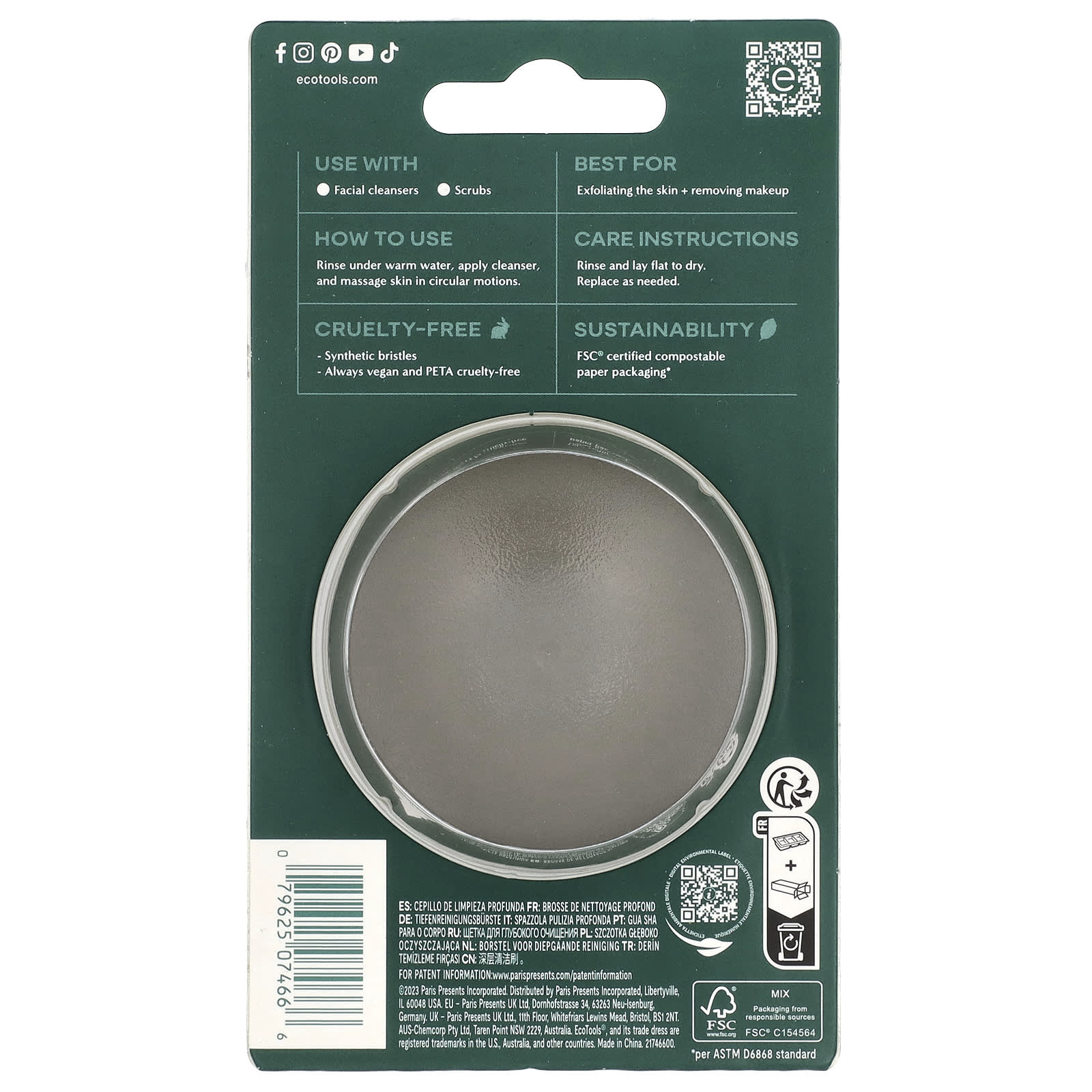 EcoTools Escova Facial de Limpeza Profunda 1 Unidade – EcoTools Beleza Limpeza Facial Utensílios de limpeza.