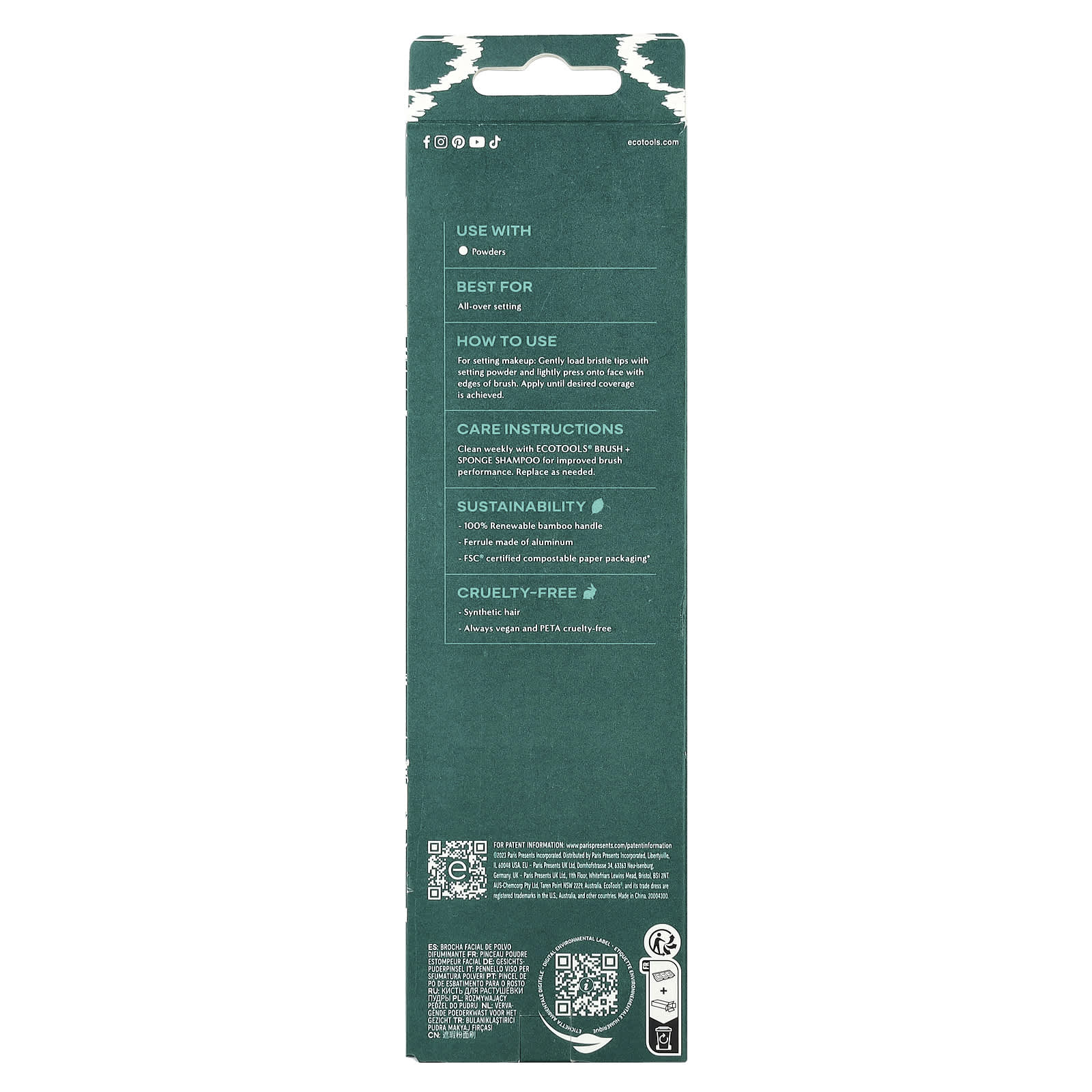 Instruções para Cuidado: Limpe semanalmente com o Shampoo de Escova + Esponja Ecotools® para melhorar o desempenho da escova. Substitua conforme necessário.