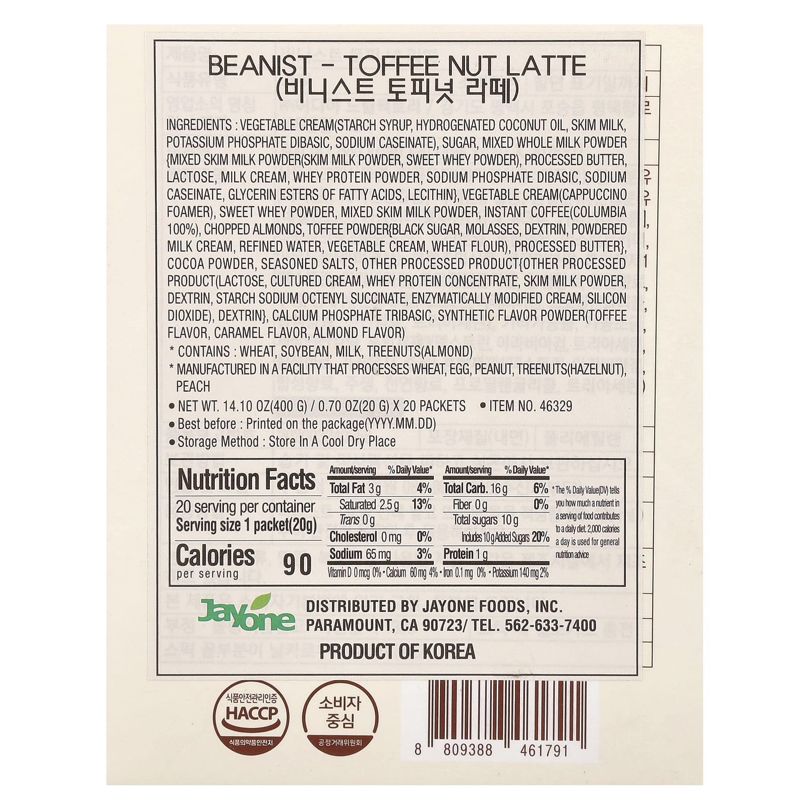 Ediya Beanist® Latte de Tofe e Nozes 20 Bastões 20 g (07 oz) Cada – Ediya Alimentos Chás e bebidas Coffee Café instantâneo.