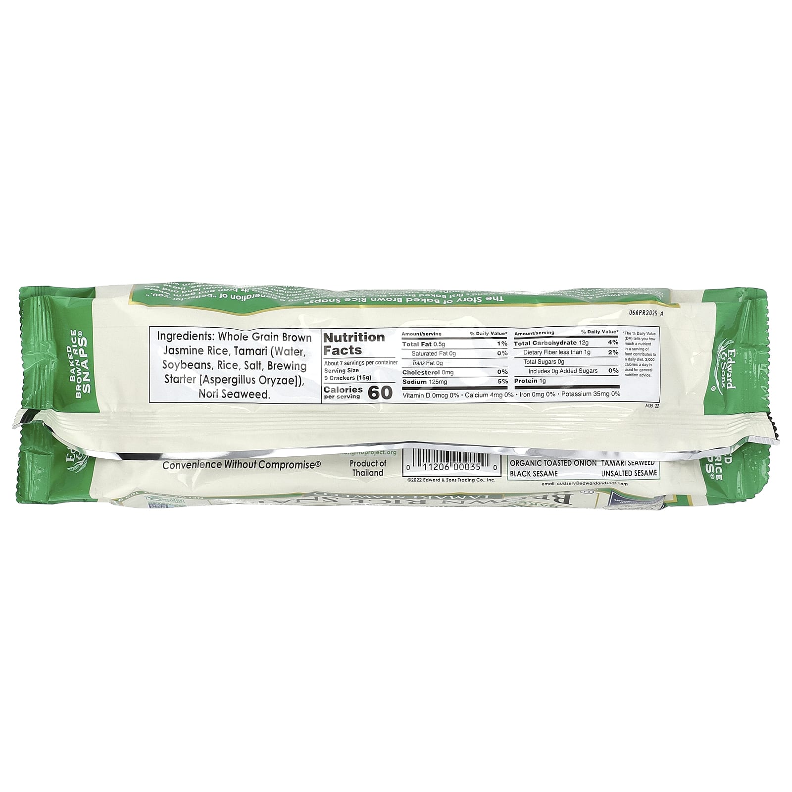 Edward & Sons Biscoitos de Arroz Marrom Assados com Grãos Integrais Algas Marinhas e Tamari 35 oz (100 g) – Edward & Sons Alimentos Petiscos e lanches Biscoitos salgados.