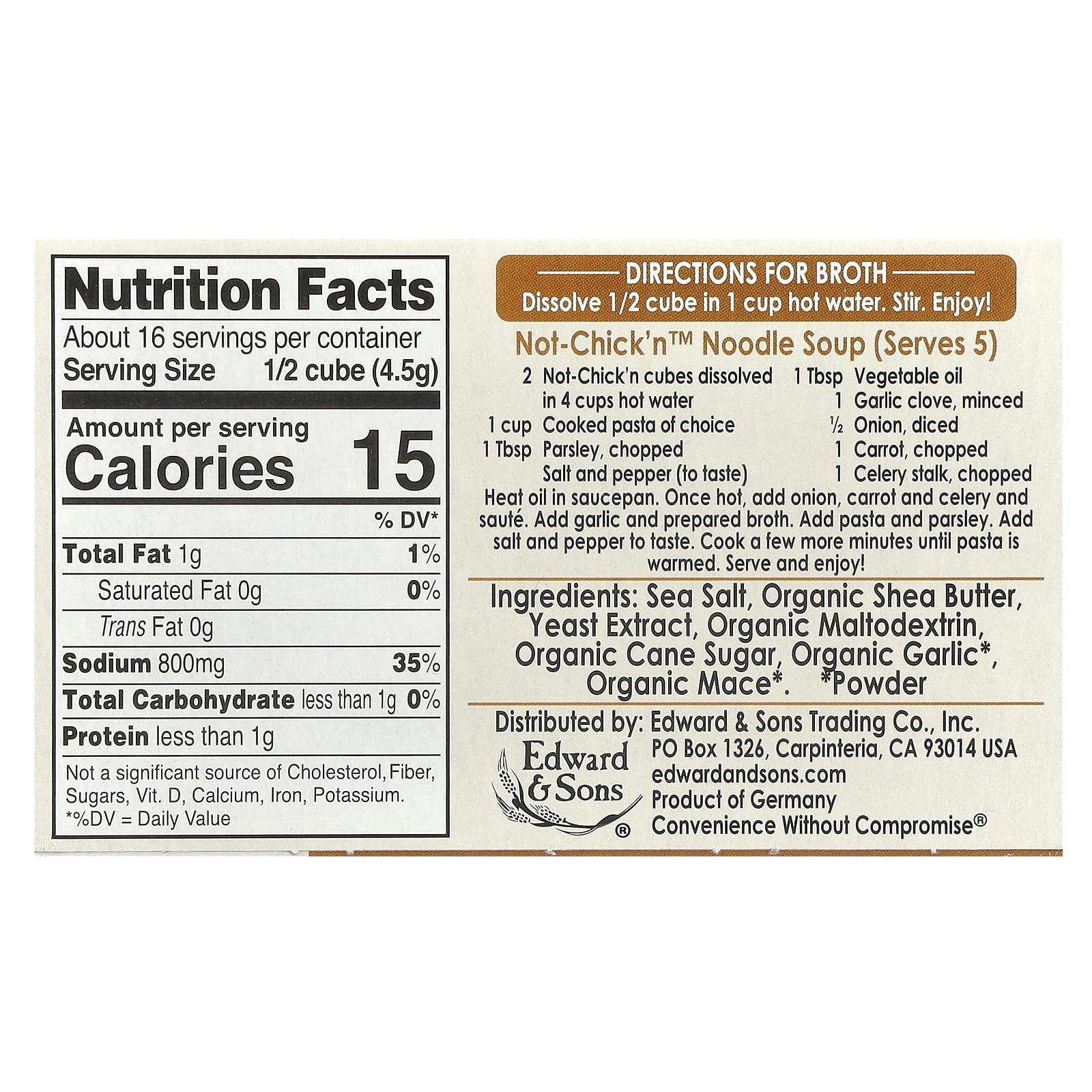 Edward & Sons Cubos de Caldo Not-Chickn™ 8 Cubos – Edward & Sons Alimentos Alimentos embalados e prontos Soup & Broth Caldos de galinha e de carne.
