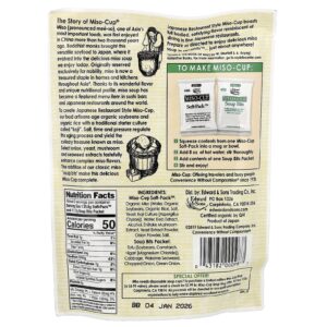 Para criar o Miso-Cup Estilo de Restauração Japonesa, nossos artesãos da alimentação envelhecem soja orgânica e arroz orgânico com uma cultura iniciadora tradicional chamada “koji”. O sal, o tempo e a pressão regulam esse processo de envelhecimento e produzem o tesouro culinário conhecido como Miso. Extratos selecionados de cebola, fermento, cogumelo e algas marinhas realçam com bom gosto os sabores complexos do Miso. A adição dos nossos “pedaços de sopa” de Miso clássico torna esta deliciosa Miso-Cup completa.