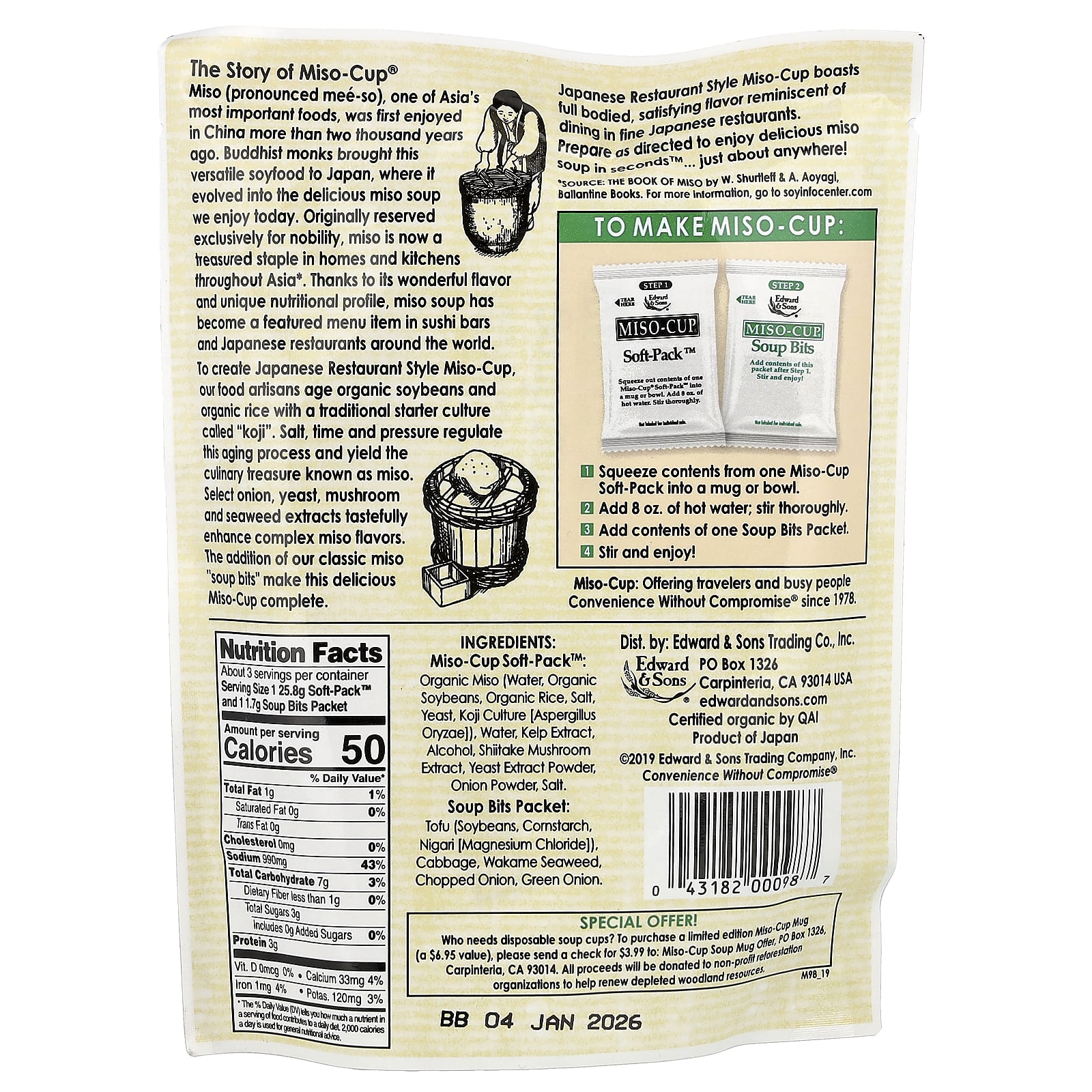 Edward & Sons Miso-Cup® Estilo de Restauração Japonesa 3 Porções Individuais 82 g (29 oz) – Edward & Sons Alimentos Alimentos embalados e prontos Sopas e Caldos Sopas de Caneca Sopa de missô.