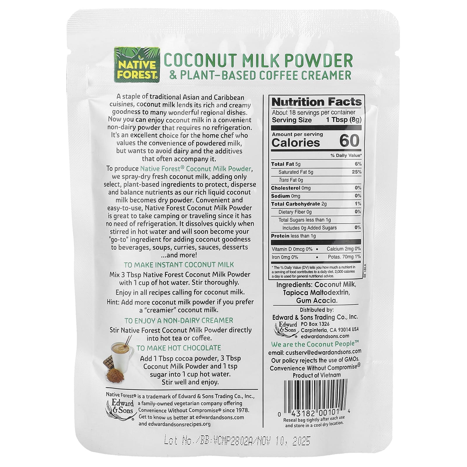 Um produto básico da cozinha tradicional asiática e caribenha, o leite de coco confere sua qualidade nutritiva e cremosa a muitos pratos regionais maravilhosos. Agora você pode desfrutar do leite de coco em um pó prático e sem laticínios que não requer refrigeração. É uma excelente escolha para o chef caseiro que preza pela praticidade do leite em pó, mas quer evitar os laticínios e os aditivos que costumam acompanhá-lo.