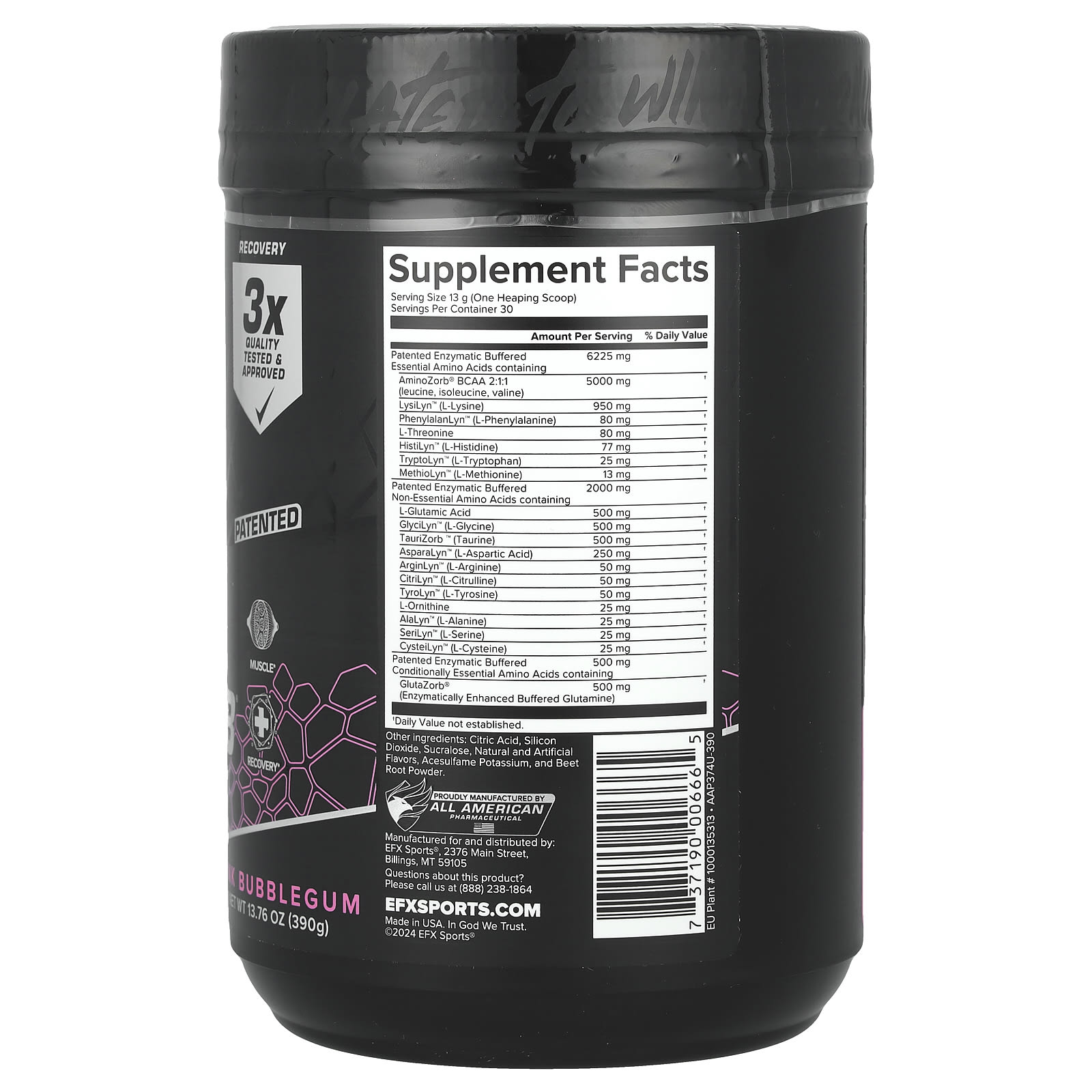 EFX Sports AminoZorb® Elite 21 Goma de Mascar Rosa 390 g (1376 oz) – EFX Sports Suplementos Aminoácidos Aminoácidos Essenciais (EAA).