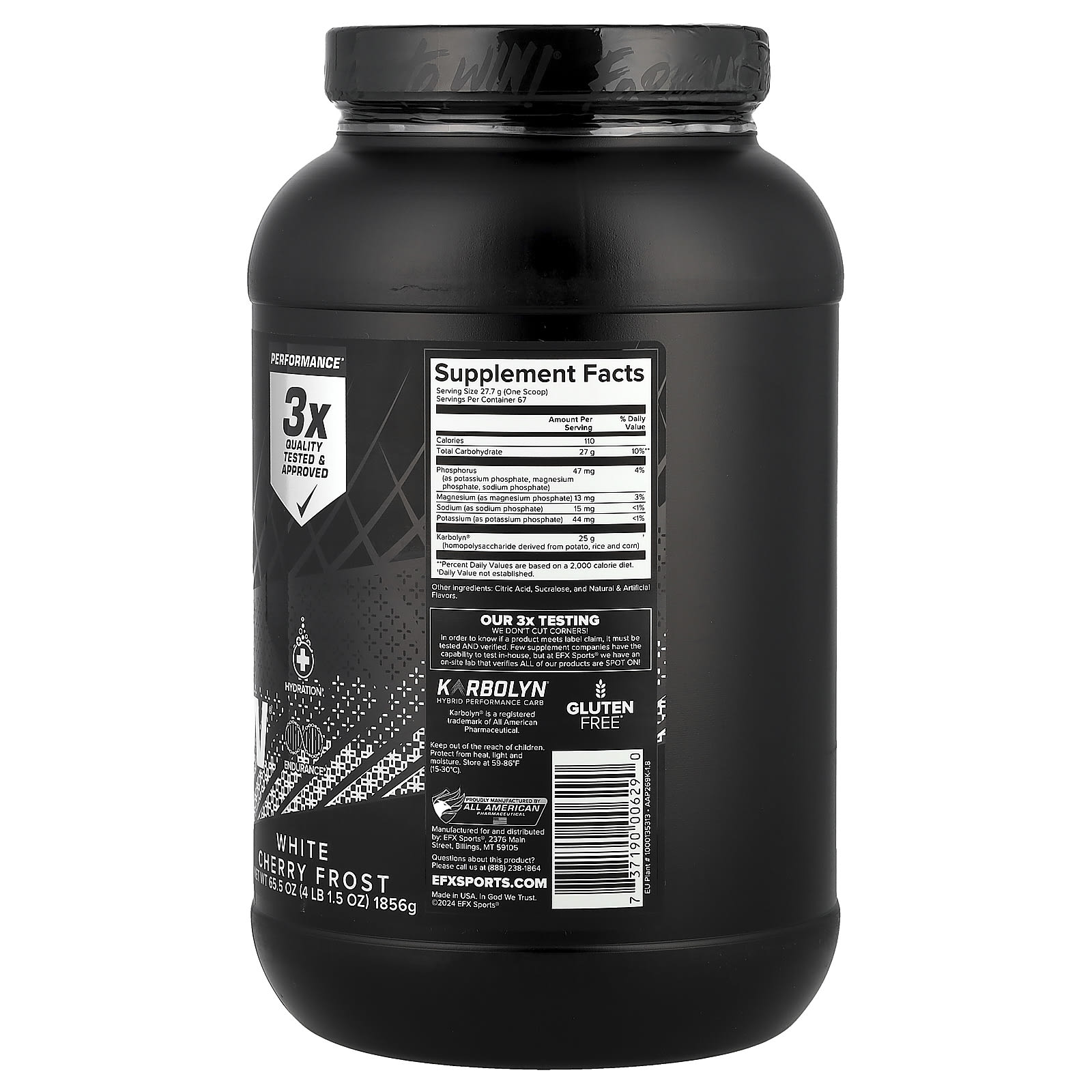 EFX Sports Karbolyn® Hydrate Cereja Branca Congelante 1.856 g (4 lb 15 oz) – EFX Sports Nutrição Esportiva Suplementos para Recuperação Muscular Carboidratos em Pó Hidratação e Eletrólitos.