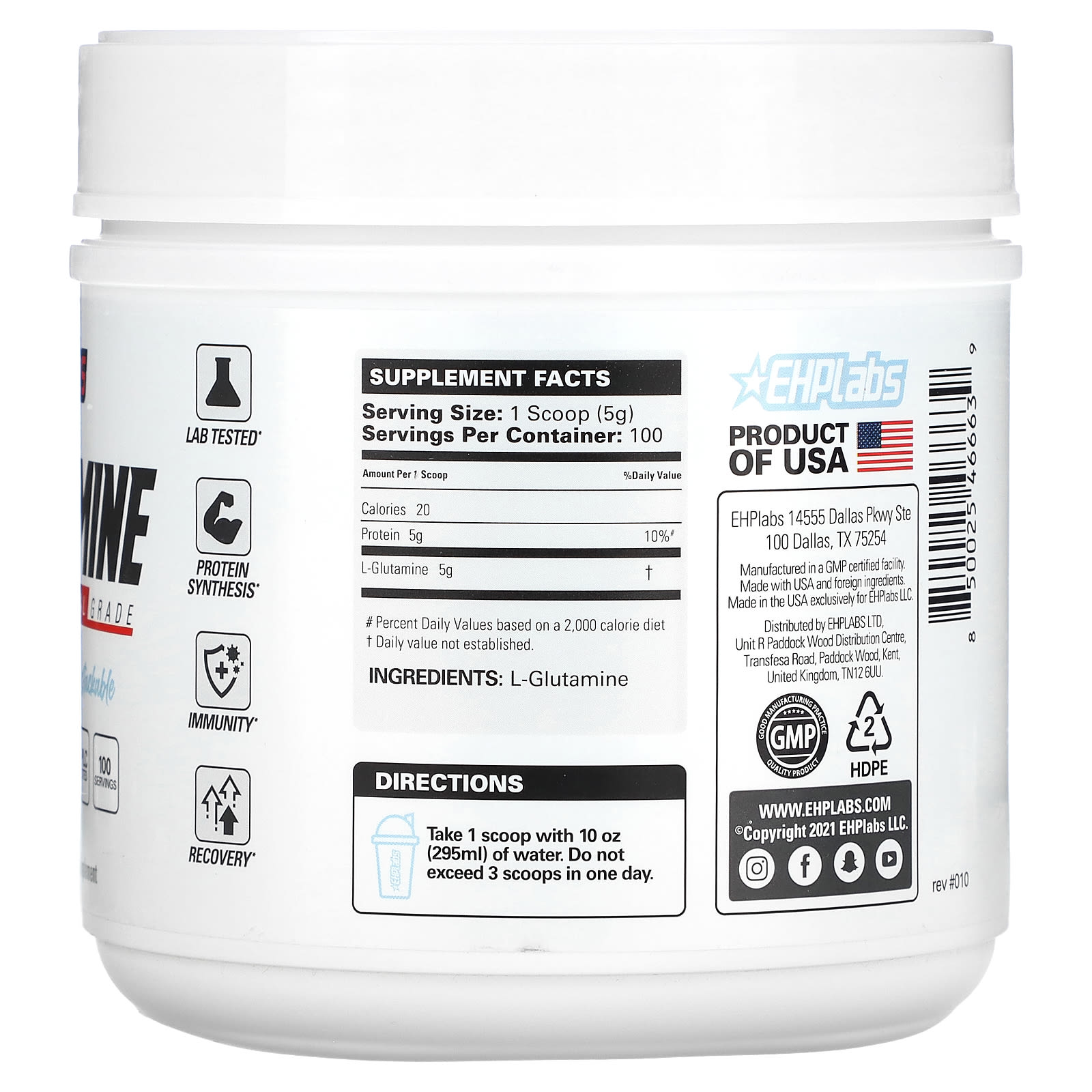 EHPlabs Glutamina 500 g (11 lb) – EHPlabs Suplementos Aminoácidos L-Glutamina.