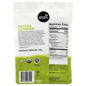 As Amêndoas de Matcha Orgânico da Elan são temperadas com matcha japonês puro para proporcionar um sabor inesquecível e crocante. O chá matcha em pó traz um sabor fresco e verde às amêndoas inteiras cremosas e amanteigadas para criar uma guloseima deliciosa e com sabor único.