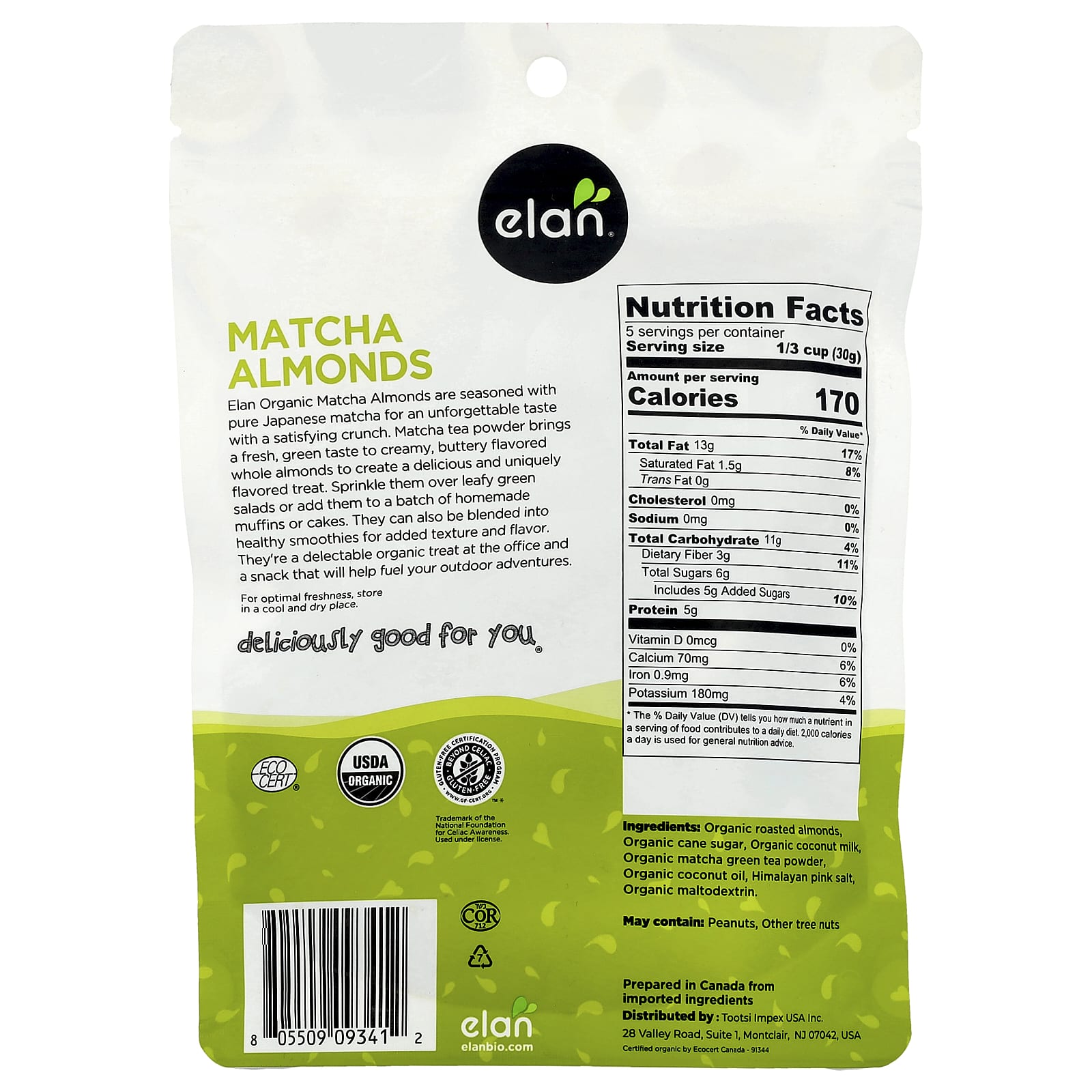Elan Amêndoas de Matcha Orgânico 160 g (56 oz) – Elan Alimentos Petiscos e lanches Castanhas e sementes Amêndoas.