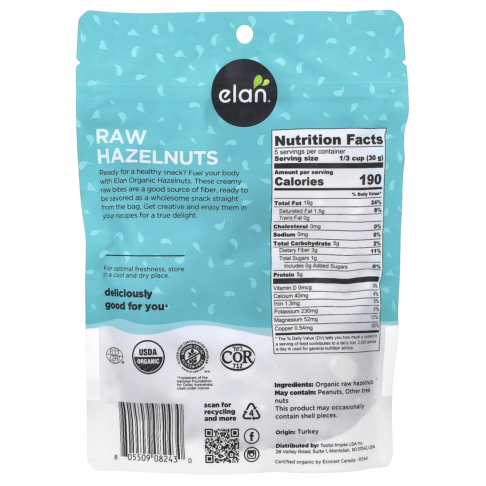 Elan Avelãs Orgânicas Cruas 165 g (58 oz) – Elan Alimentos Petiscos e lanches Castanhas e sementes.
