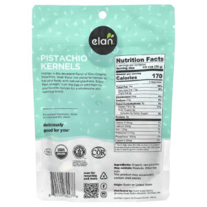 Delicie-se com o sabor clássico dos Pistaches Orgânicos da Elan. Adquira esses grãos de pistache crus para abastecer seu corpo com delícias naturais. Saboreie-os direto do saco ou adicione-os às suas receitas favoritas para obter um reforço saudável e nutritivo.