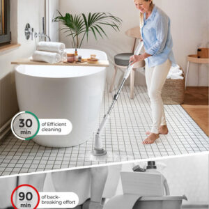 – Cerdas duráveis e resistentes a arranhões: as cerdas do lavador de banheira são feitas de material PP resistente e durável que resiste ao derramamento. Eles limpam eficazmente as manchas persistentes sem arranhar a banheira ou os azulejos. O recurso à prova dágua IPX7 garante o uso diário seguro e prolonga a vida útil do produto.