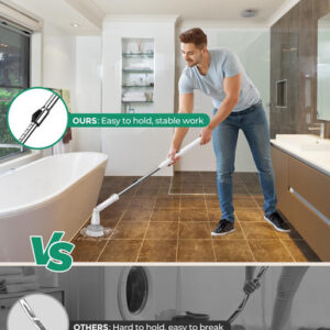 – Alça retrátil para maior conforto: limpar enquanto se inclina pode ser doloroso para quem tem problemas nas costas ou nos joelhos. O lavador elétrico de banheira com cabo longo pode ser estendido para três comprimentos diferentes, permitindo que você limpe banheiras e pisos sem se dobrar ou se ajoelhar. Apenas segure e ele fará o trabalho para você!