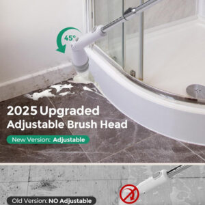 – Cabeça de escova ajustável para áreas de difícil acesso: ao contrário de outras depuradoras, esta tem um ângulo de cabeça de escova ajustável e flexível. Você não precisará se curvar ou reposicionar durante a limpeza, pois esta lavadora elétrica pode facilmente alcançar pontos difíceis, como chuveiros ou aberturas de torneiras.