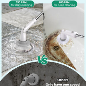 – Duas velocidades de rotação, reduza pela metade o tempo de limpeza: ao contrário de outras lavadoras elétricas que oferecem apenas uma velocidade com potência limitada, a lavadora elétrica KHelfer possui duas velocidades de rotação ajustáveis, permitindo que você elimine resíduos de sabão, argamassa e manchas difíceis em apenas alguns minutos. Ative a baixa velocidade de 350 RPM para a limpeza diária ou pressione e segure por 2 a 4 segundos ou clique novamente para alternar para o modo de 400 RPM para uma limpeza mais profunda.