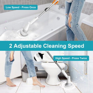 – Limpeza fácil: a escova giratória Ultrean fornece um efeito de limpeza de alta velocidade de 400 RPM, eliminando a fadiga associada às escovas manuais tradicionais. Este lavador elétrico sem fio pode limpar facilmente todos os cantos do banheiro, economizando pelo menos metade do tempo gasto nas tarefas domésticas.
