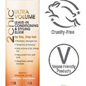 GIOVANNI 2chic Ultra-Volume Leave-In Conditioning & Styling Elixir – Builds Volume, Promotes Weightless Control for Fine/Thin Hair, Volumizing Formula with Papaya & Tangerine Butter, Color Safe – 4 oz – MOISTURIZING SCALP CARE – GIOVANNI 2chic Ultra-Volume Leave-In Conditioning & Styling Elixir builds volume into fine, limp and thin hair while defining waves and beautiful curls with lightweight Botanical Oils – DEEP HYDRATION – Powered by our Dual Volumizing mix of Papaya & Tangerine Butter, create maximum body and hydration into your hair. This volumizing blend detangles fine hair and protects against split ends and frizz – COLOR SAFE – GIOVANNI 2chic Ultra-Volume Leave-In Conditioning & Styling Elixir is 100% color-safe and nourishes hair with a proprietary blend of vitamins, antioxidants, and omega fatty acids without stripping color – VEGAN-FRIENDLY & CRUELTY-FREE – GIOVANNI Products use a number of organic ingredients and are Leaping Bunny Certified cruelty free. GIOVANNI Products are never tested on animals and come in sophisticated recyclable packaging – ECO CHIC – GIOVANNI has been bridging the gap between natural and salon-quality hair care since 1979. We strive to use the very best ingredients and are always focused on high performance