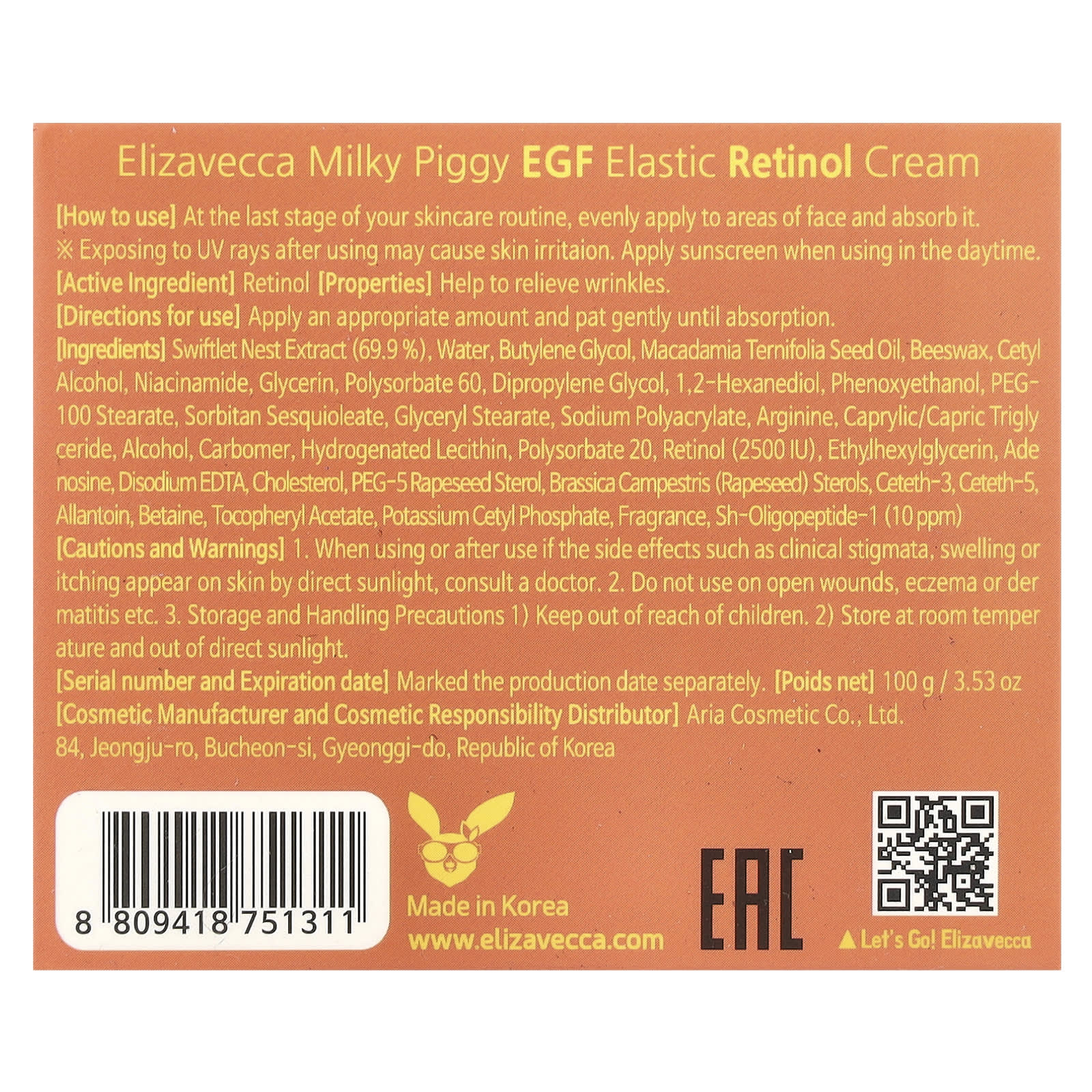 Elizavecca Milky Piggy EGF Creme de Retinol Elástico 100 g (353 oz) – Elizavecca Beleza Beleza por Ingrediente Cuidados com a Pele com Retinol Hidratantes Faciais e Cremes Hidratantes e Cremes K-Beauty.