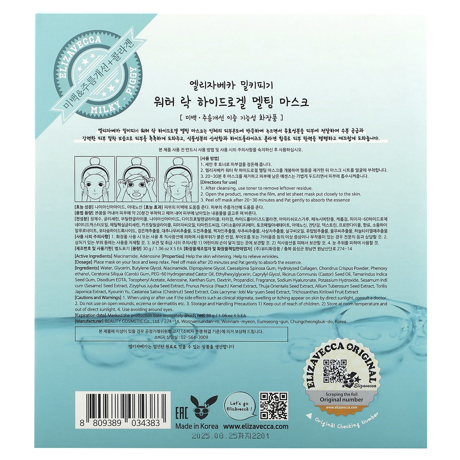 Elizavecca Milky Piggy Máscara de Hidrogel para Fusão de Hidrogênio 5 Máscaras 30 g (106 oz) Cada – Elizavecca Beleza Máscaras Faciais de Beleza Máscaras Faciais Máscaras em folha K-Beauty.