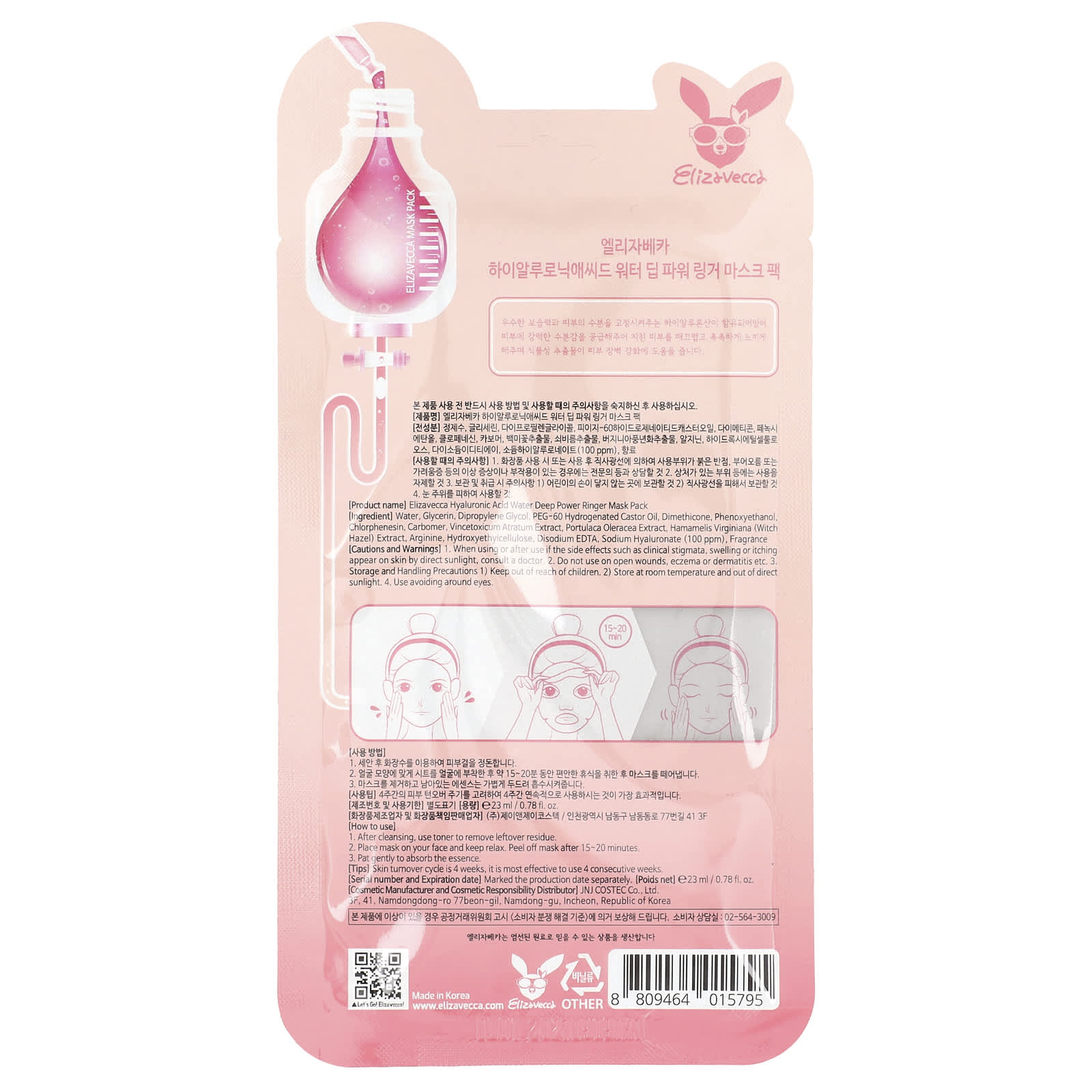 Elizavecca Pacote de Máscara de Beleza Ringer Água de Ácido Hialurônico 1 Unidade 23 ml (078 fl oz) – Elizavecca Beleza Máscaras Faciais de Beleza Máscaras Faciais Máscaras em folha K-Beauty.
