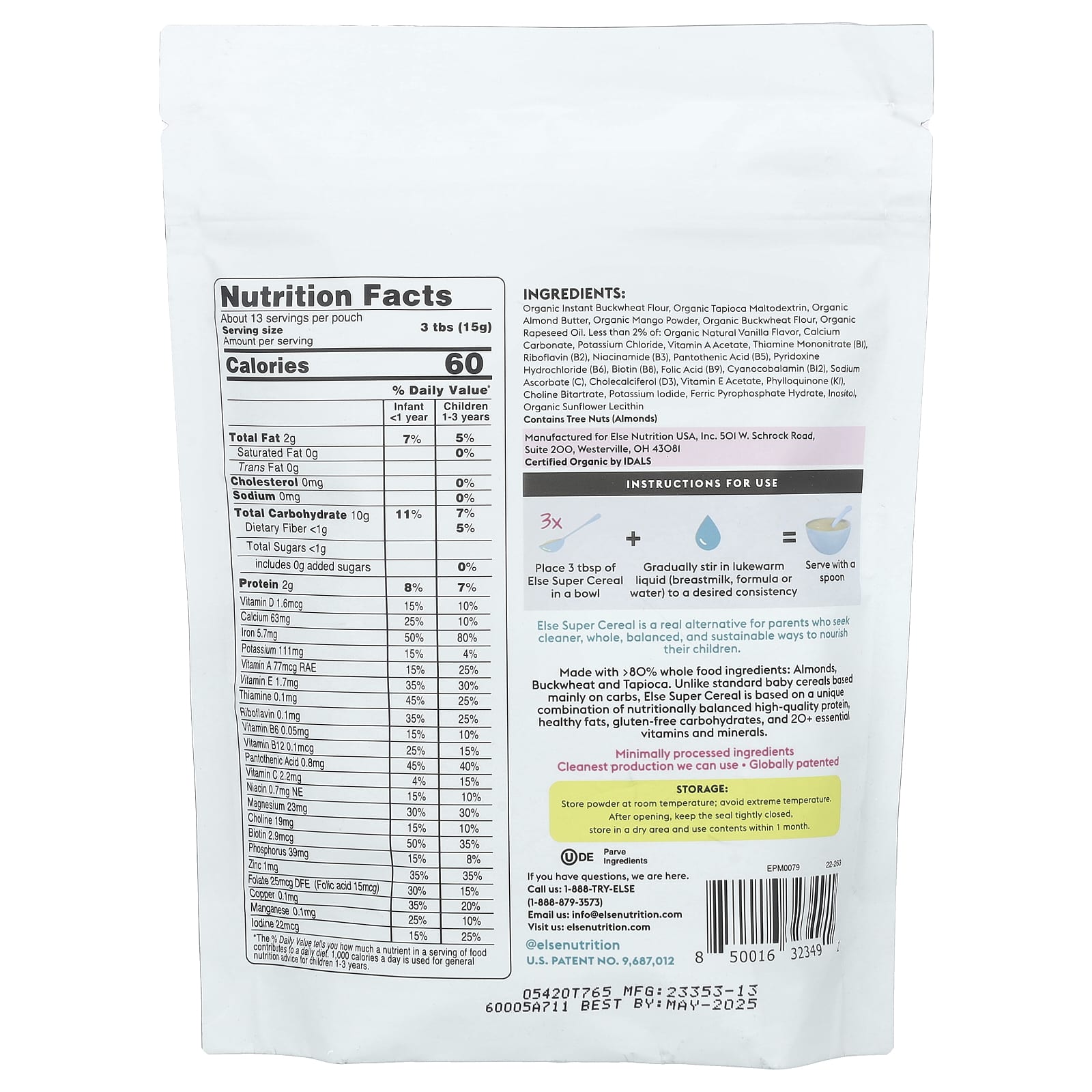 Else Bebê Supercereal de Amêndoas e Trigo Sarraceno à Base de Plantas A Partir de 6 Meses Manga 198 g (7 oz) – Else Bebês e Crianças Alimentação Cereal para bebês.