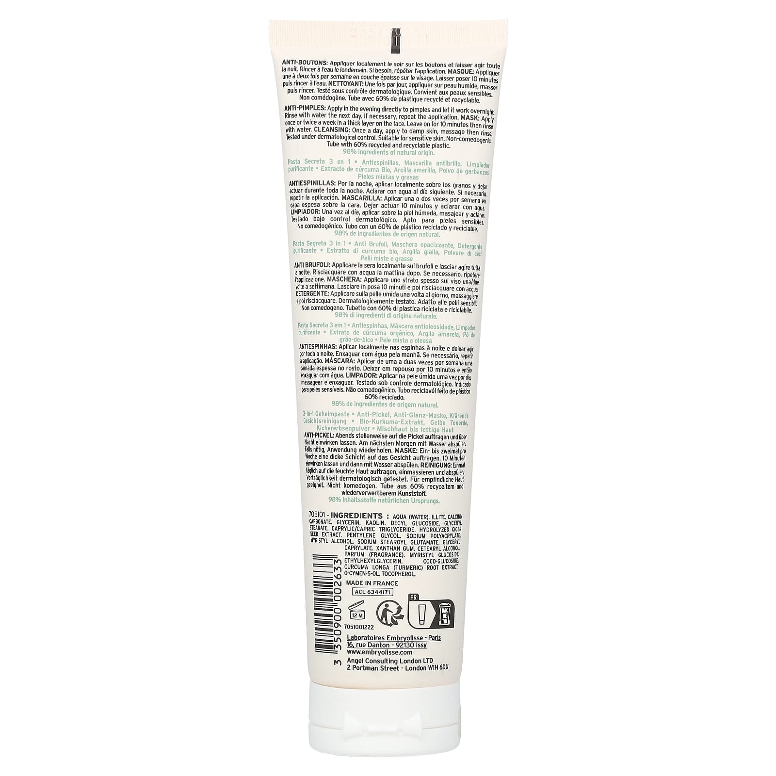 Embryolisse Pasta Secreta 3 em 1 100 ml (338 fl oz) – Embryolisse Beleza Tratamentos e Séruns Tratamentos para Acne e Imperfeições.