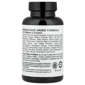 Brotos de Alimentos Integrais e Orgânicos em Pó (Quinoa Orgânica, Feijão Mung Orgânico, Painço Orgânico), Mistura Probiótica Crua (100 milhões de UFCs de Acidophilus / B. Bifidum), Mistura de Enzimas de Plantas Crus (Lipase, Lactase, Invertase, Protease, Hemicelulase, Celulase, Alfa-Galactosidase, Amilase, Bromelaína, Papaína, Protease Ácida-Estável, Maltase), Fruto-oligossacarídeos, Suco de Romã Integral em Pó, Alimento Integral Cru Alimentos Integrais e Açaí liofilizado, Alimentos Integrais em Pó de Casca de Mangostão, Frutas Integrais Orgânicas em Pó.