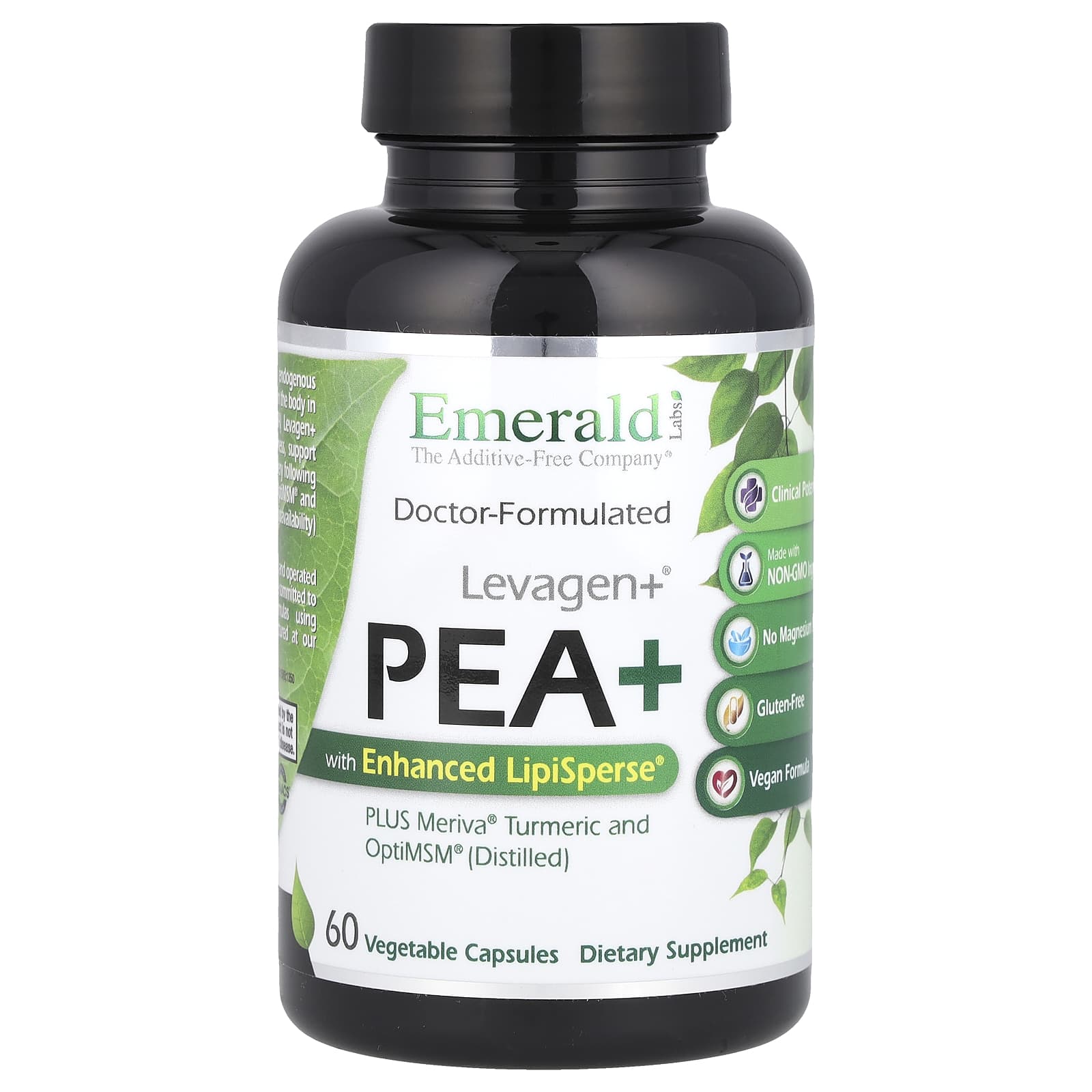 Emerald Laboratories Levagen+® Pea+ with Enhanced LipiSperse® 60 Vegetable Capsules – Emerald Laboratories Suplementos Ossos, Articulações e Cartilagem Palmitoylethanolamide (PEA).