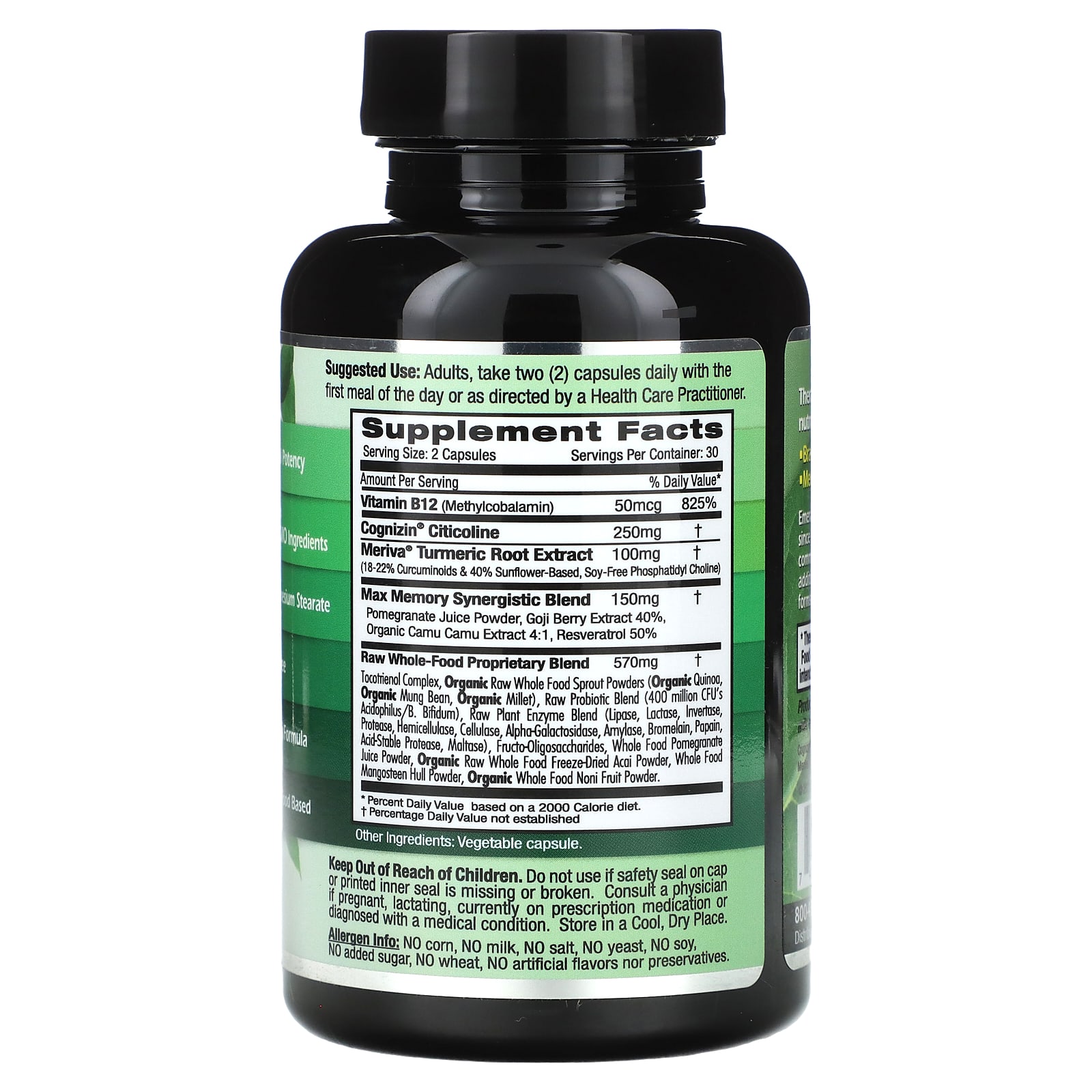 Emerald Laboratories Saúde da Memória 60 Cápsulas Vegetais – Emerald Laboratories Suplementos Cérebro e Cognição Fórmulas para Foco e Memória.