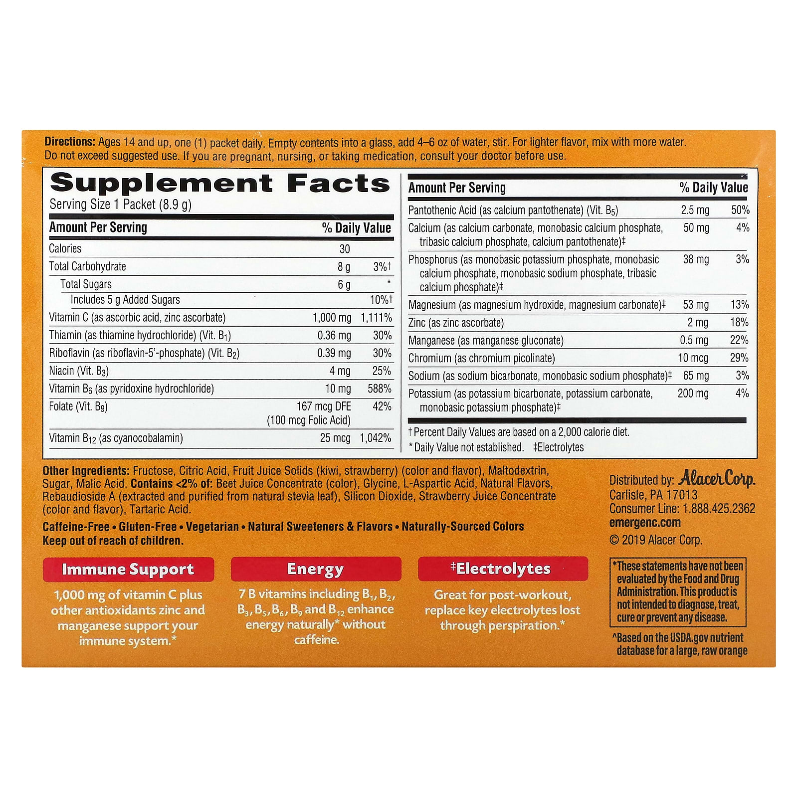 Emergen-C Vitamina C Mistura para Bebidas Gaseificadas com Sabor Kiwi e Morango 1.000 mg 30 Pacotes 89 g (031 oz) Cada – Emergen-C Suplementos Vitaminas Vitamina C Ácido ascórbico Saúde Gripe e Resfriado.