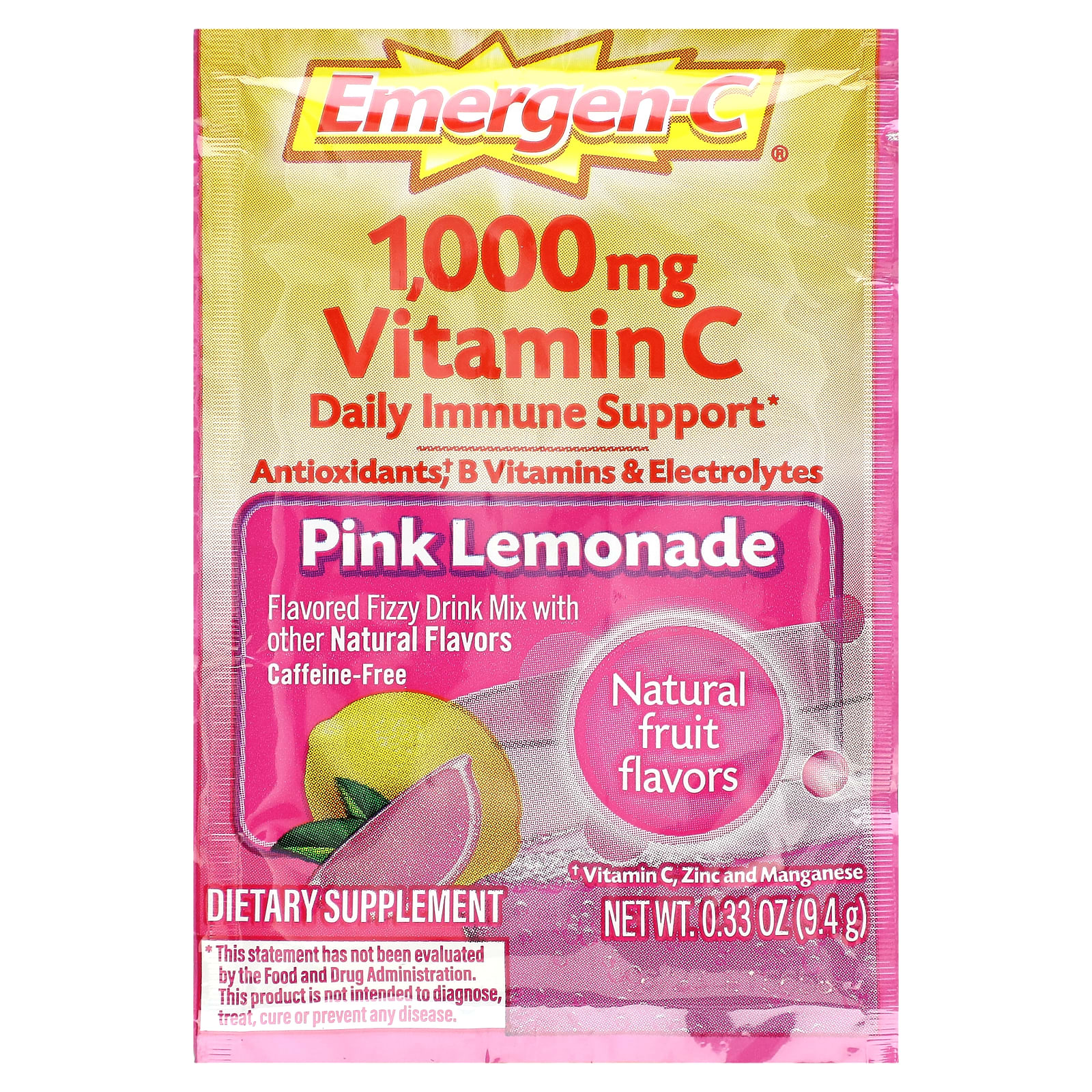 Emergen-C Vitamina C Mistura para Bebidas Gaseificadas com Sabor Limonada Rosa 1.000 mg 30 Pacotes 94 g (033 oz) Cada – Emergen-C Suplementos Vitaminas Vitamina C Ácido ascórbico Bebês e Crianças Saúde Infantil Saúde dos adolescentes.